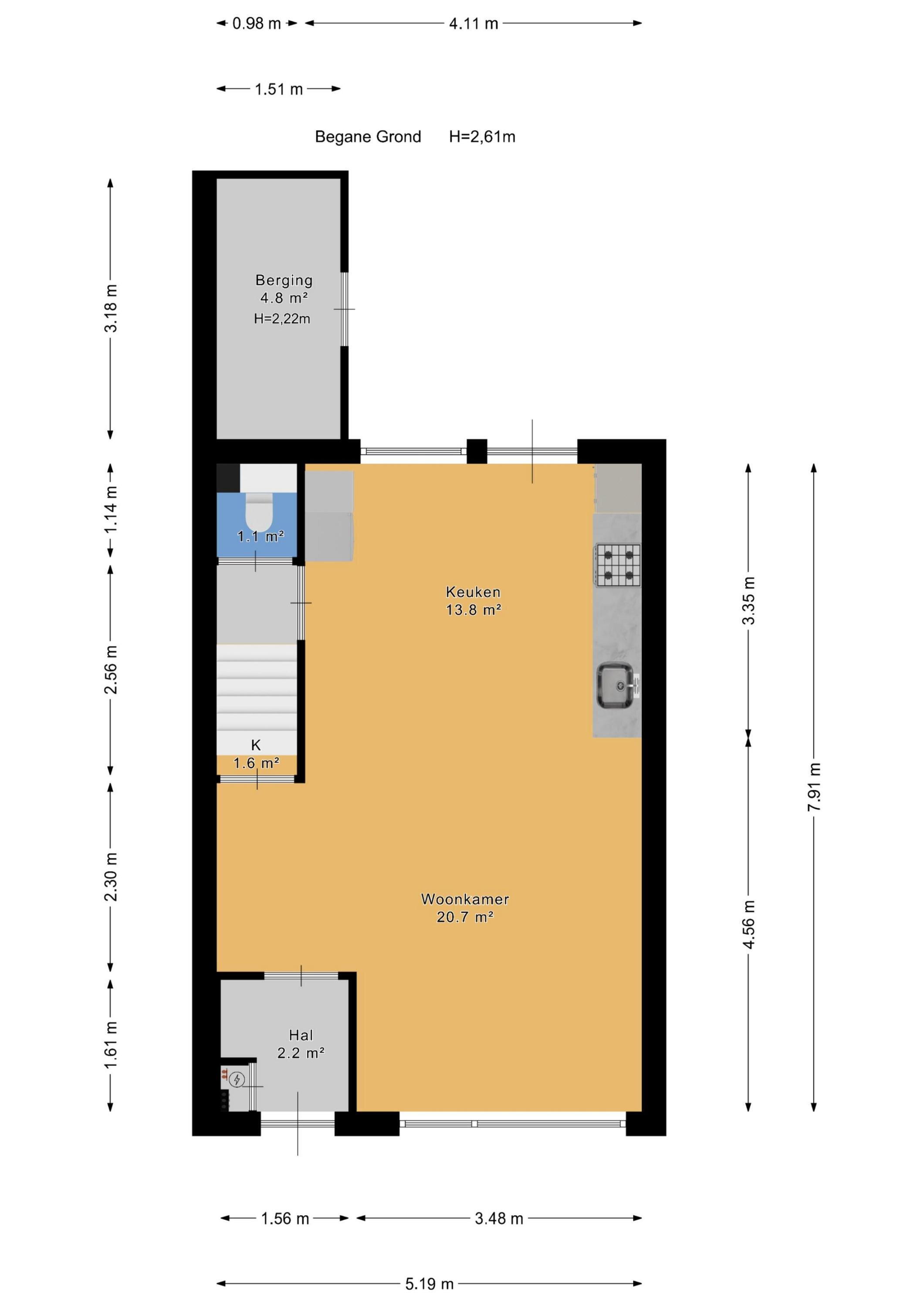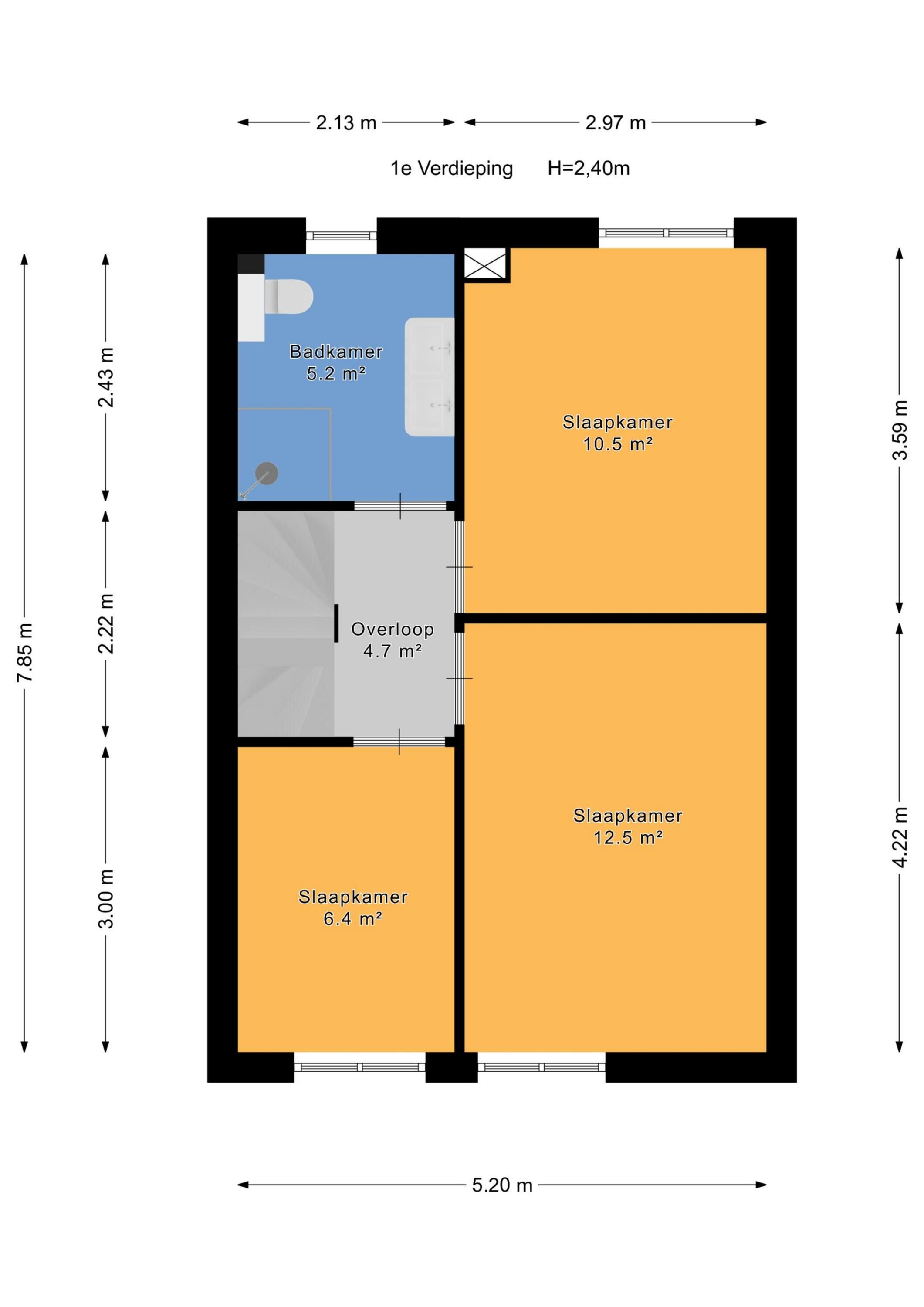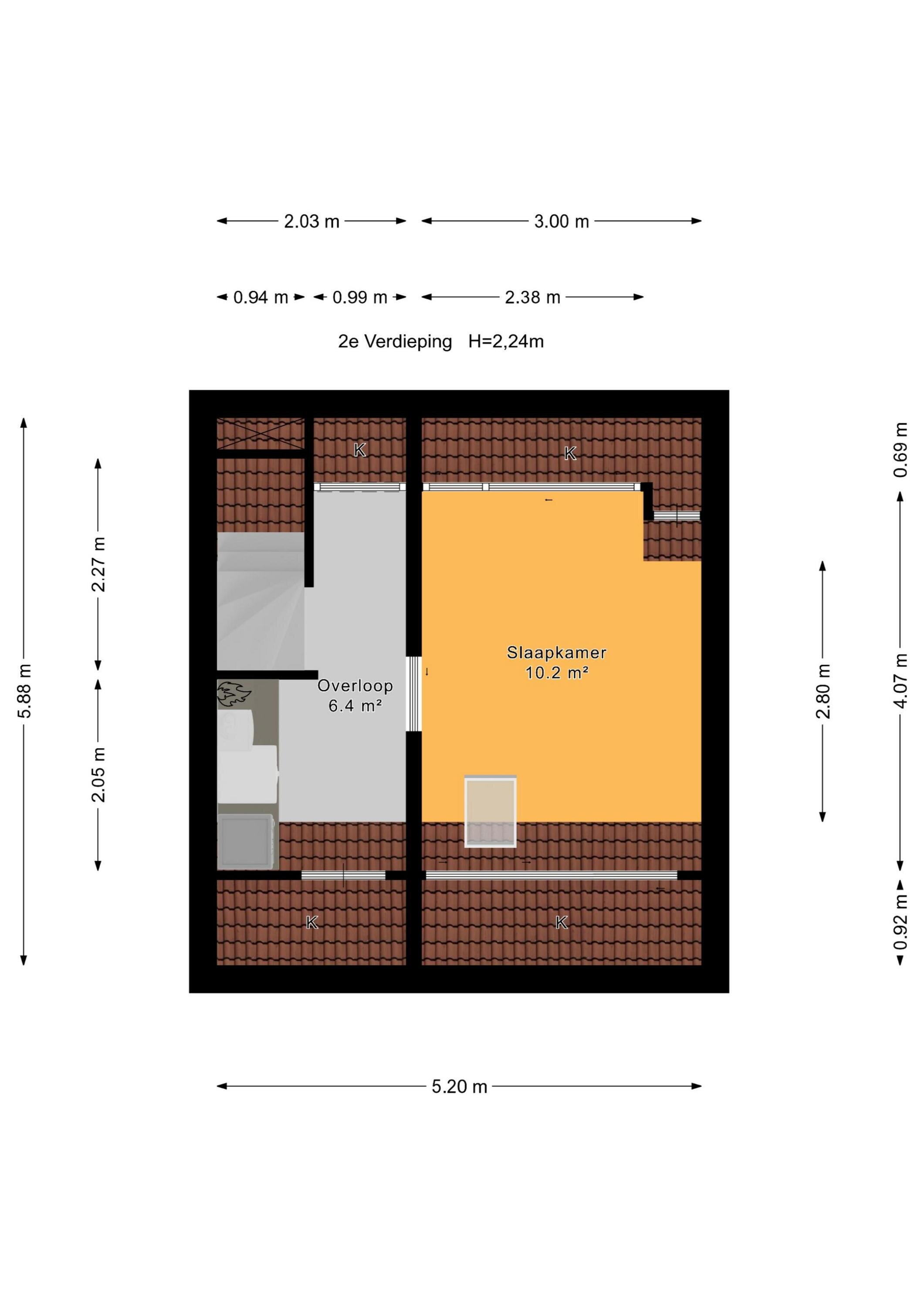 - 51 m² (9.78 meter diep en 5.2 meter breed)